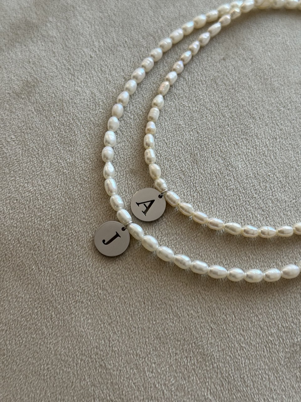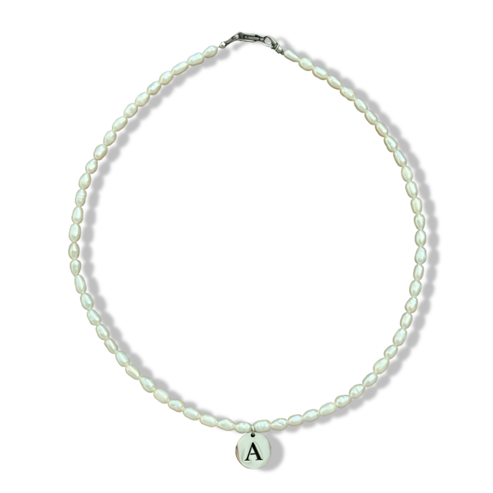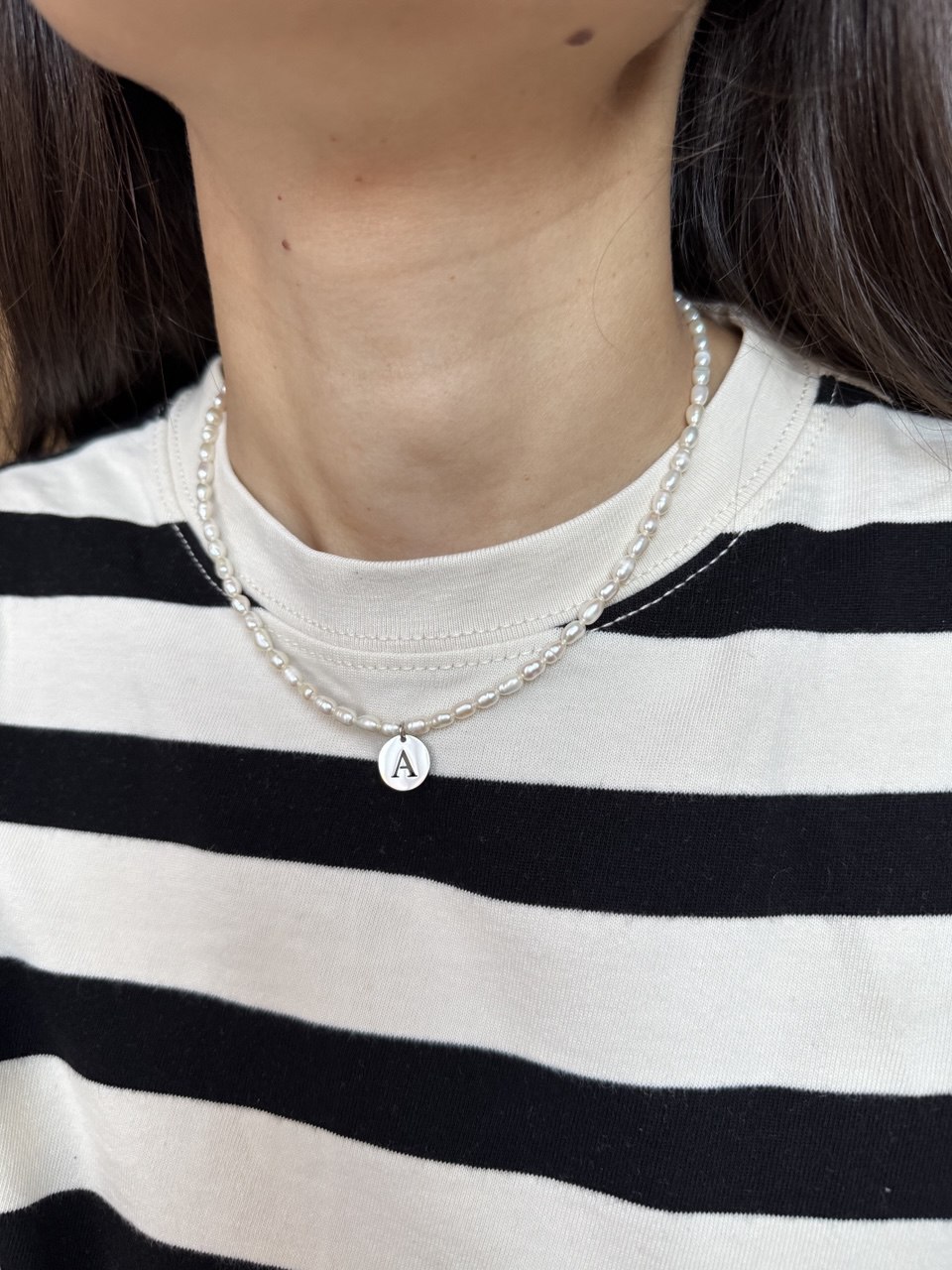 Available: A, D, J, K, M, S Length: 38 + 5 cm Materials: pearls, stainless steel