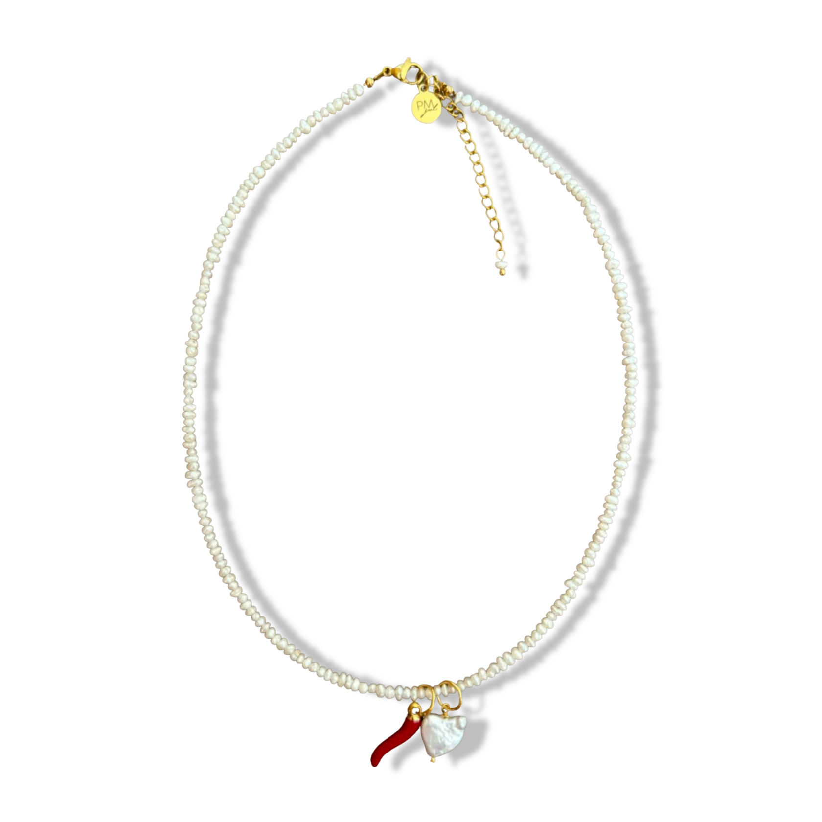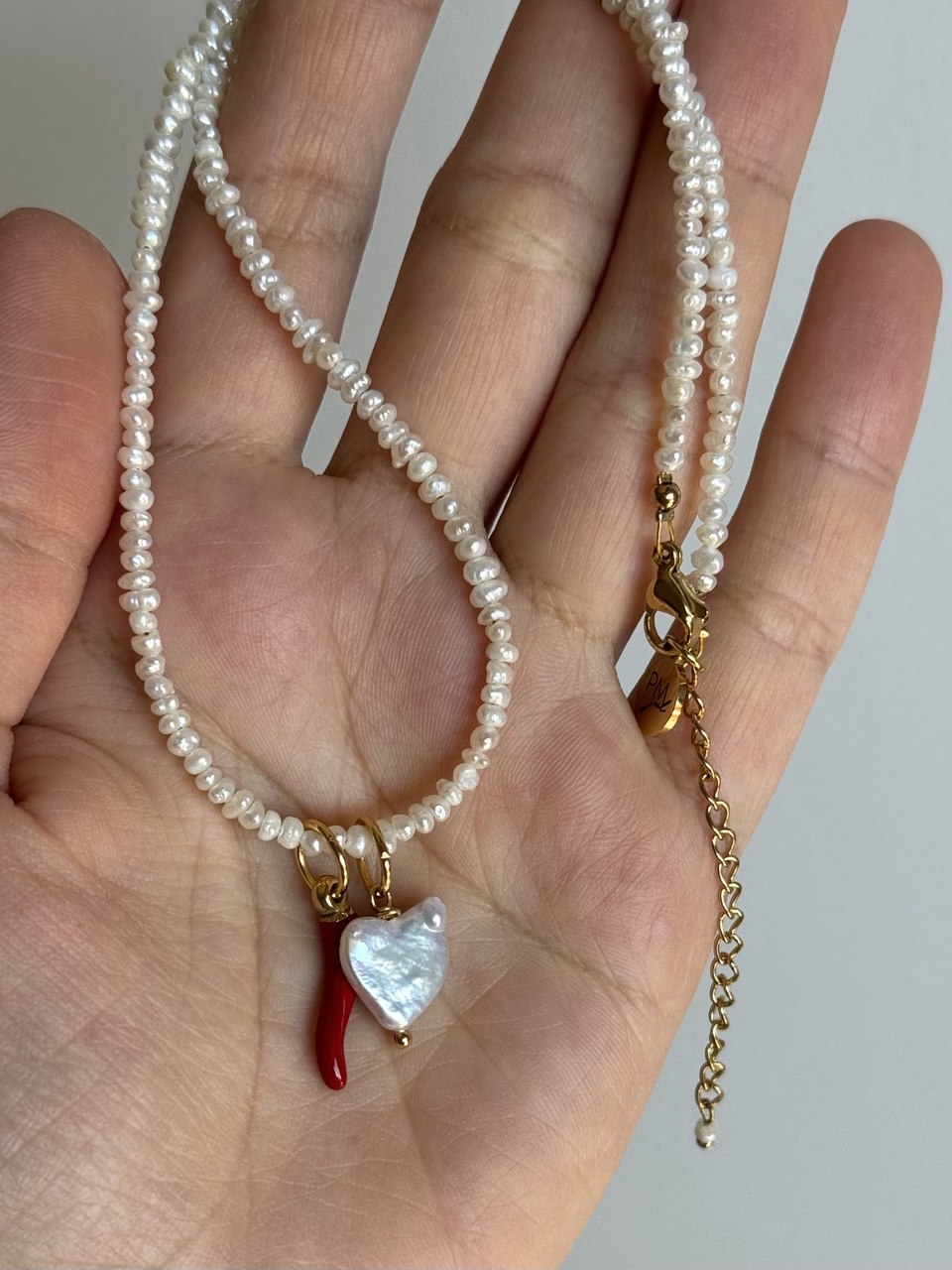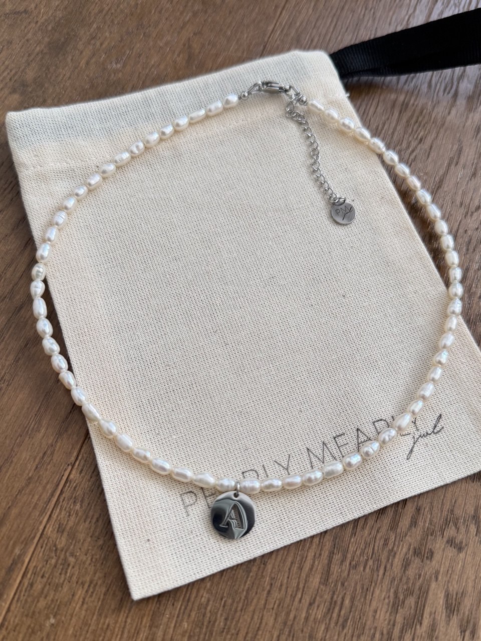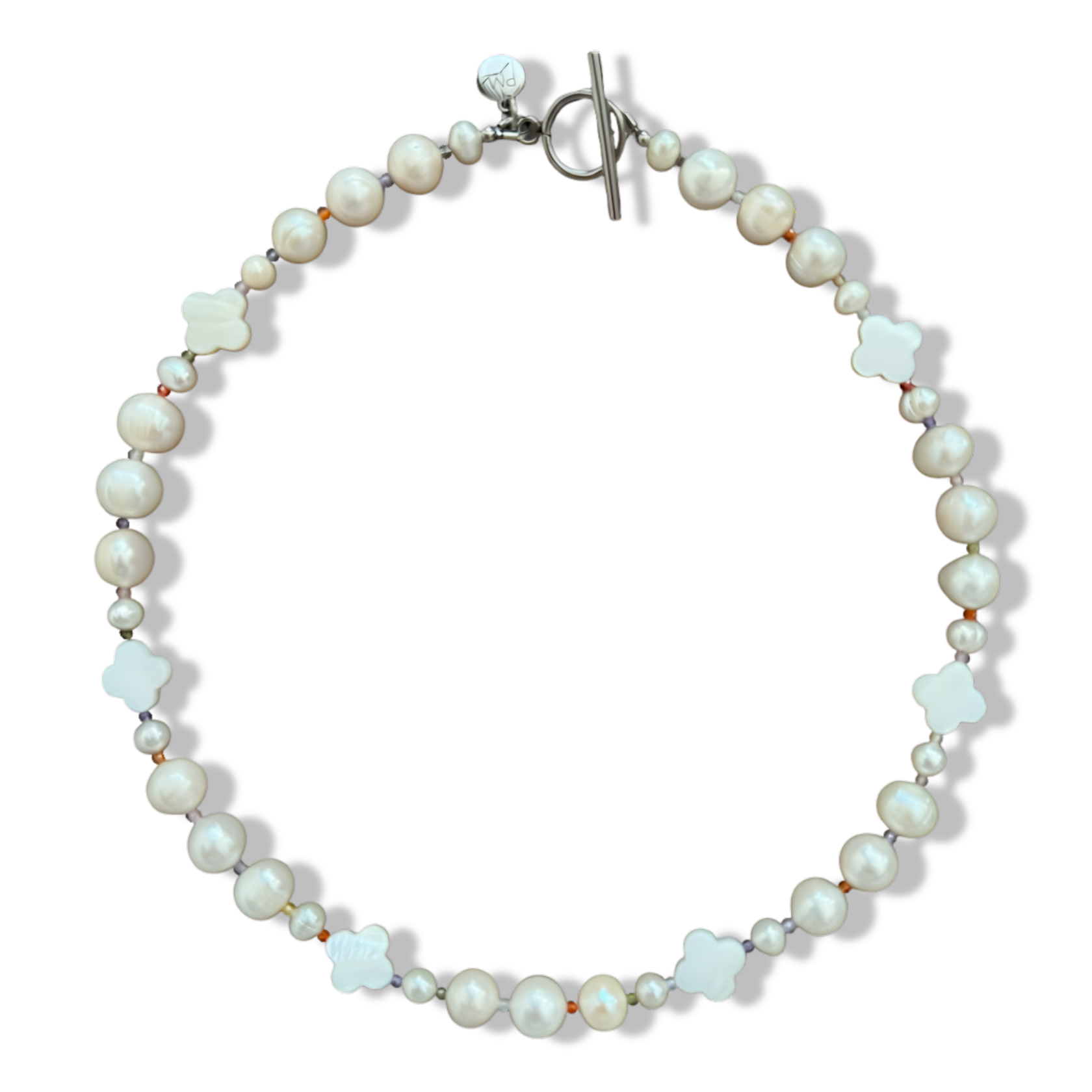 Available: A, D, J, K, M, S Length: 38 + 5 cm Materials: pearls, stainless steel