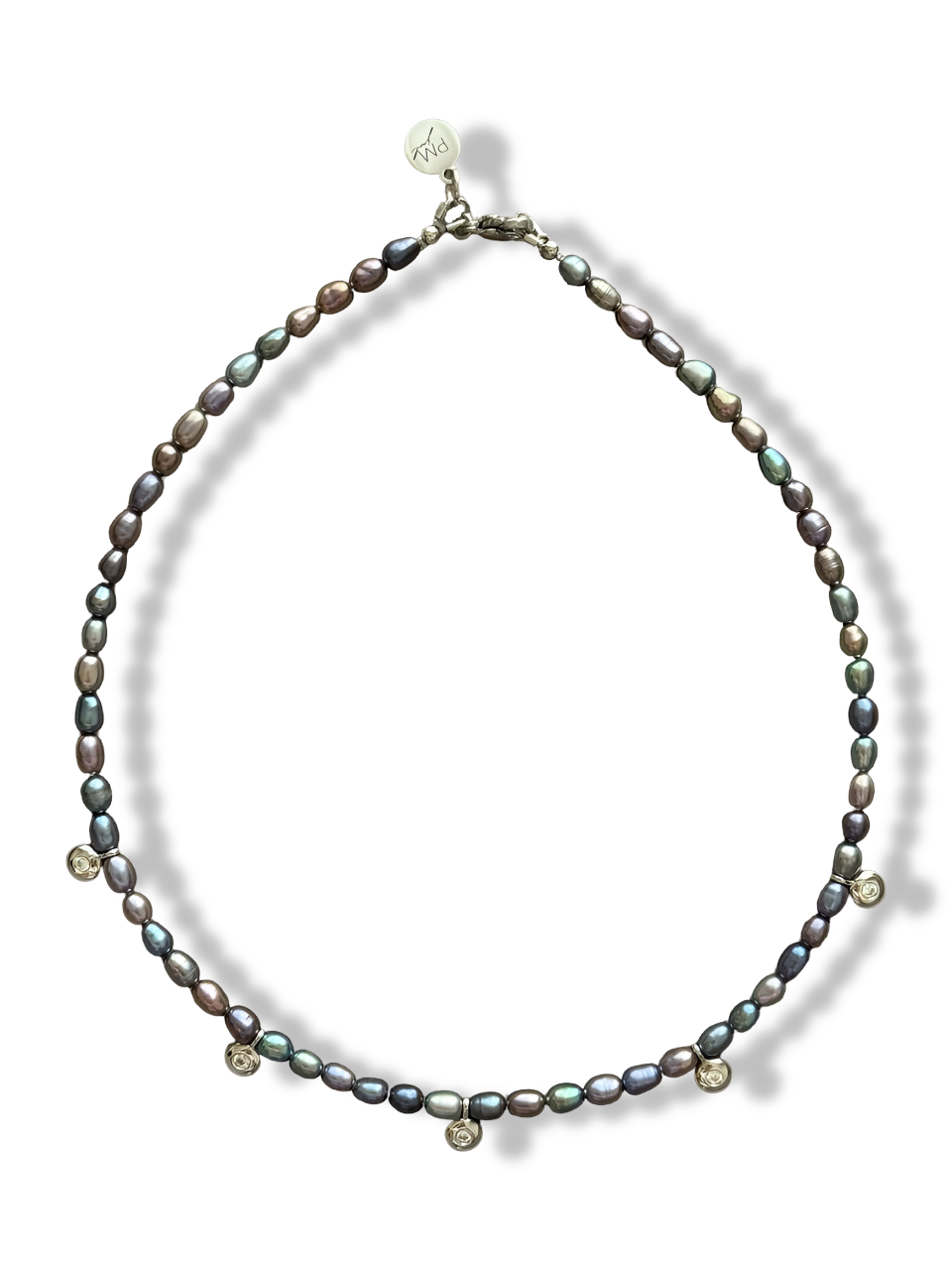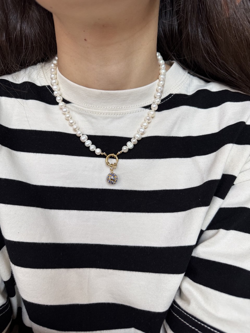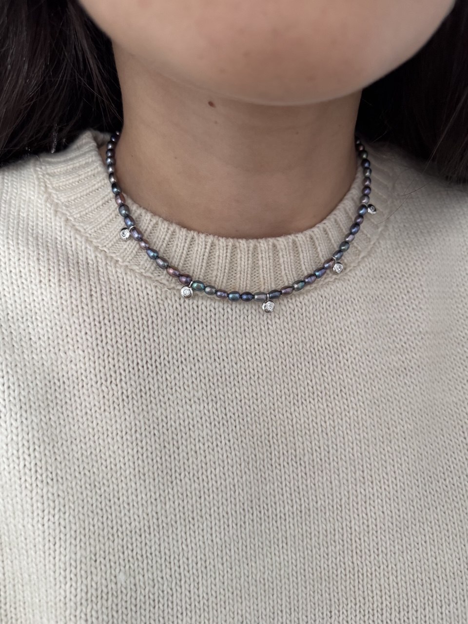 Length: 43 cm Materials: natural pearls, zircons, stainless steel