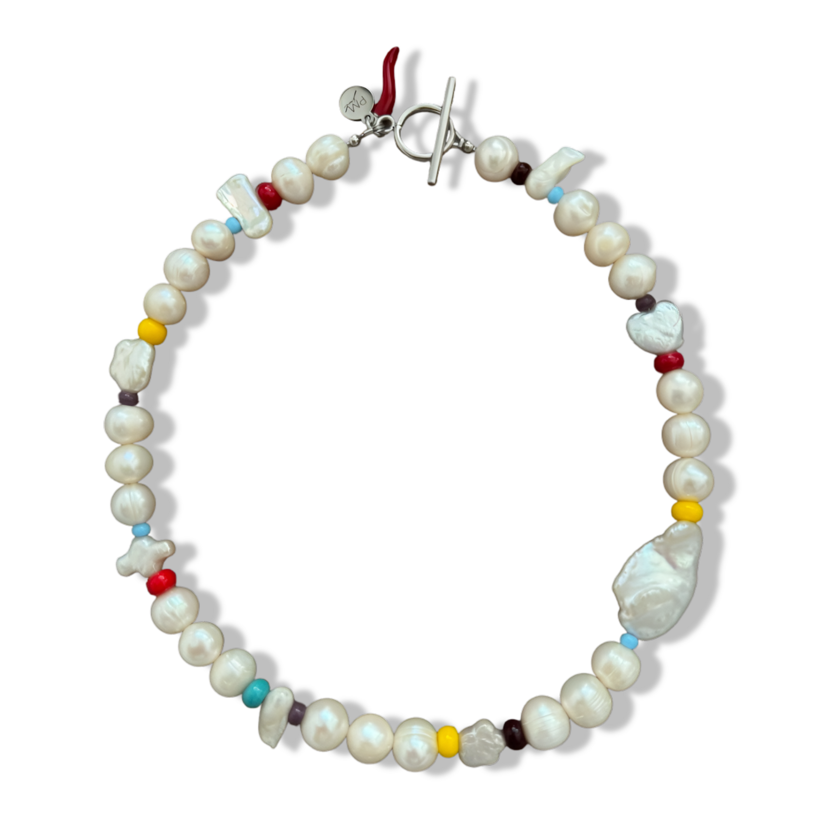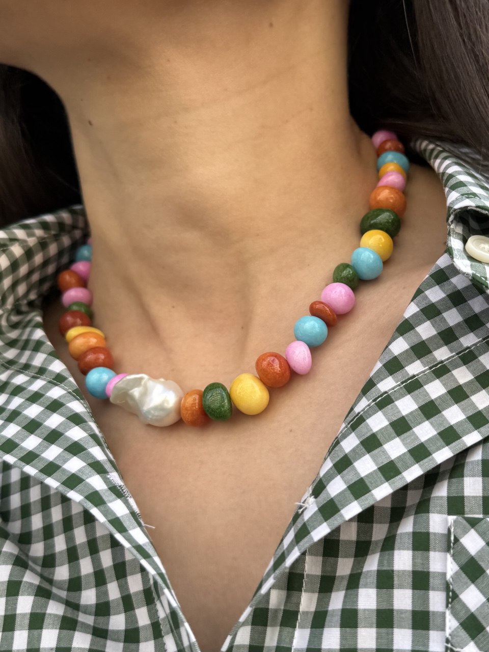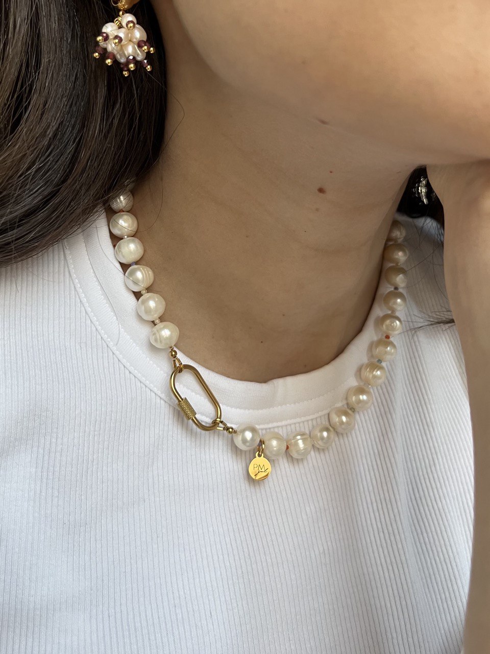Length: 40 cm Materials: pearls, baroque pearls, glass, stainless steel