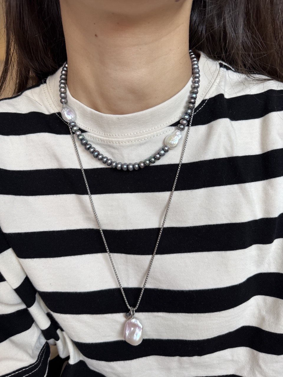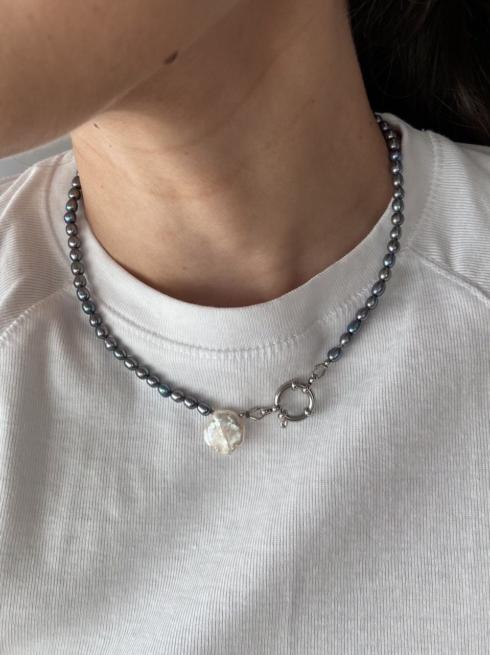 Length: 65-75 cm Pearl size: 25-30 mm Materials: baroque pearl, stainless steel