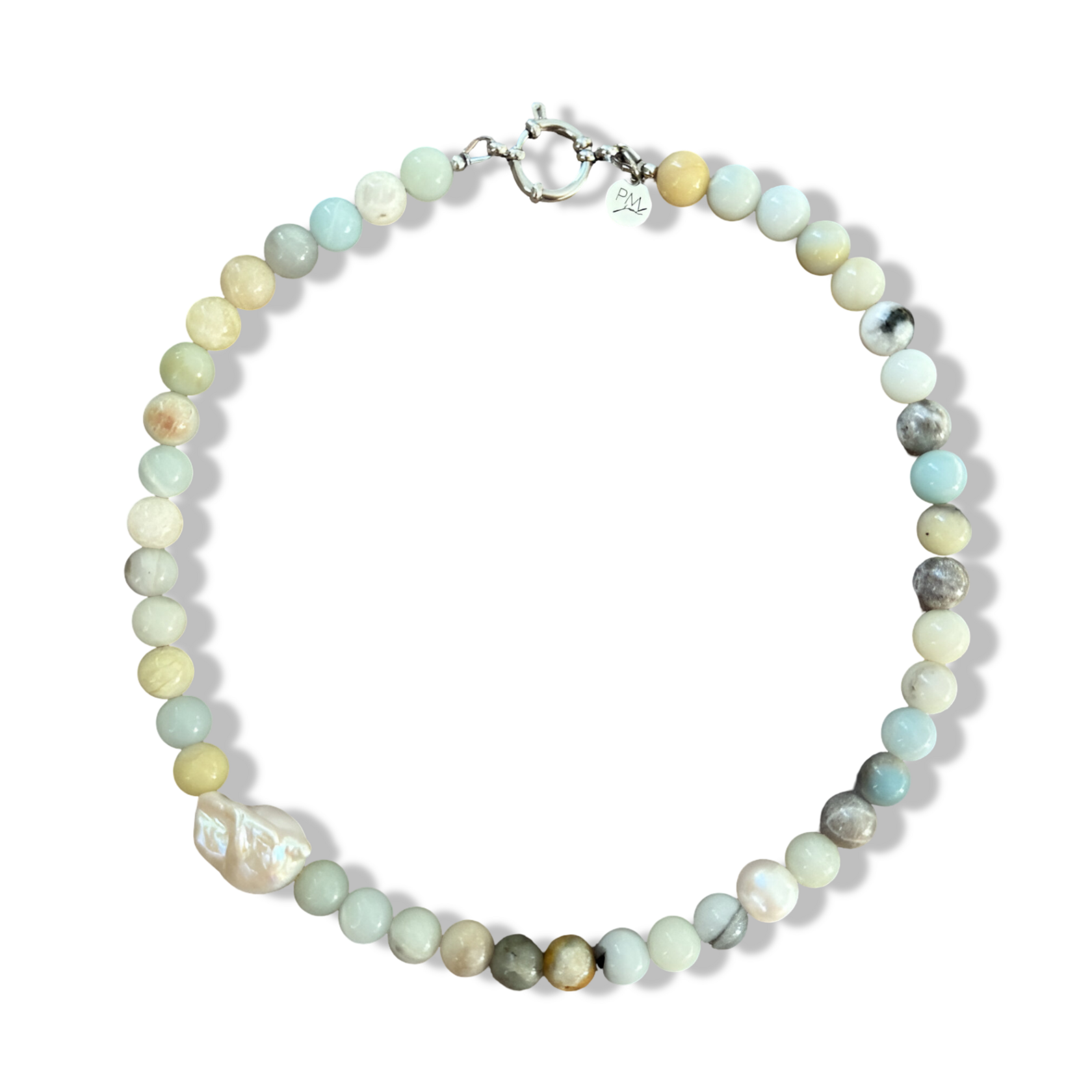 Length: 41 cm Materials: morganite, baroque pearl, stainless steel