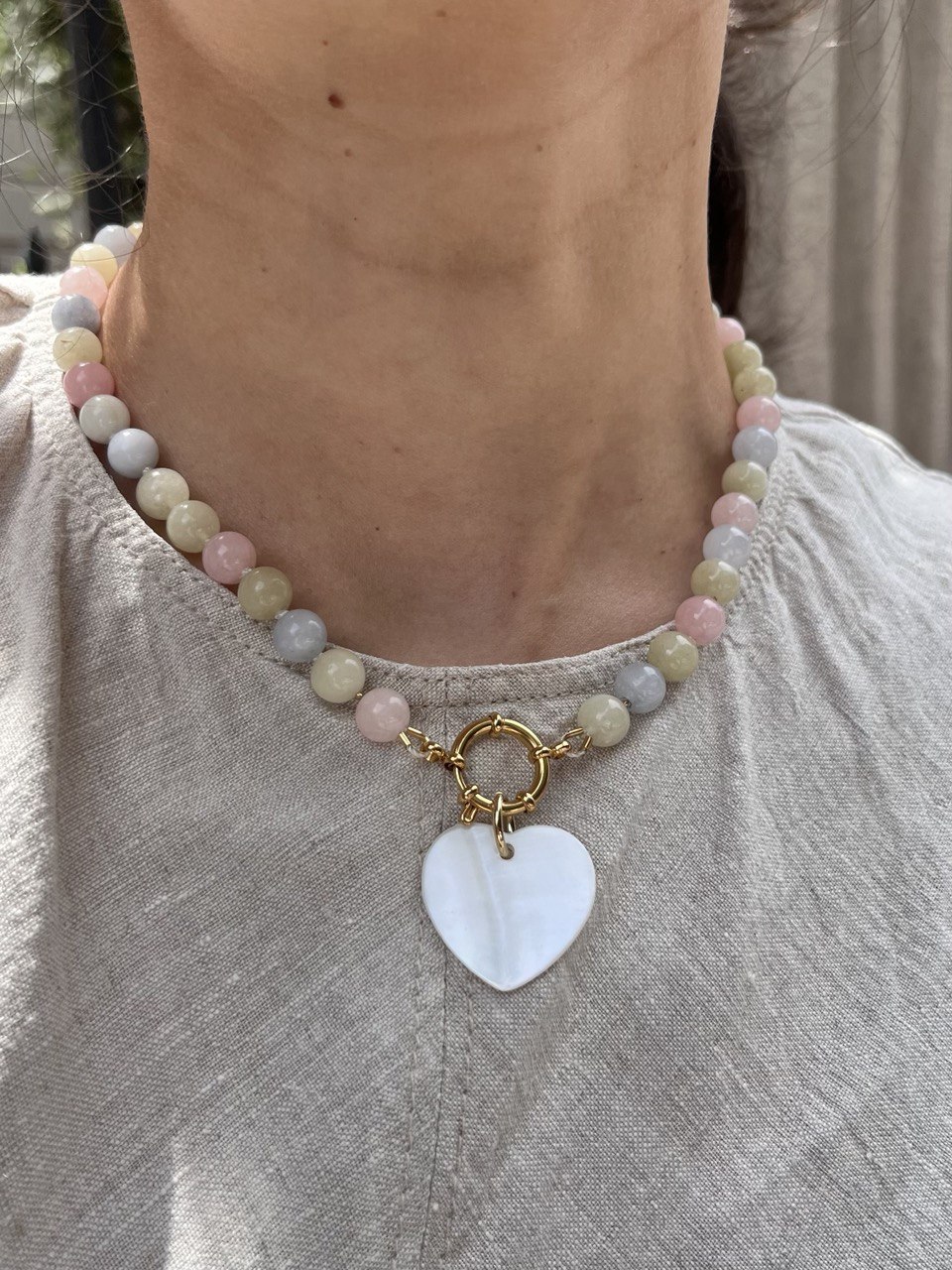 Length: 43 cm Materials: morganite, stainless steel