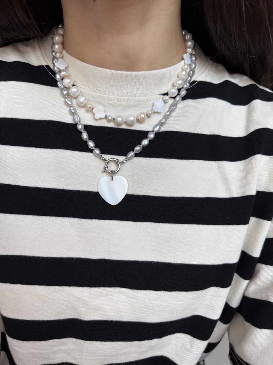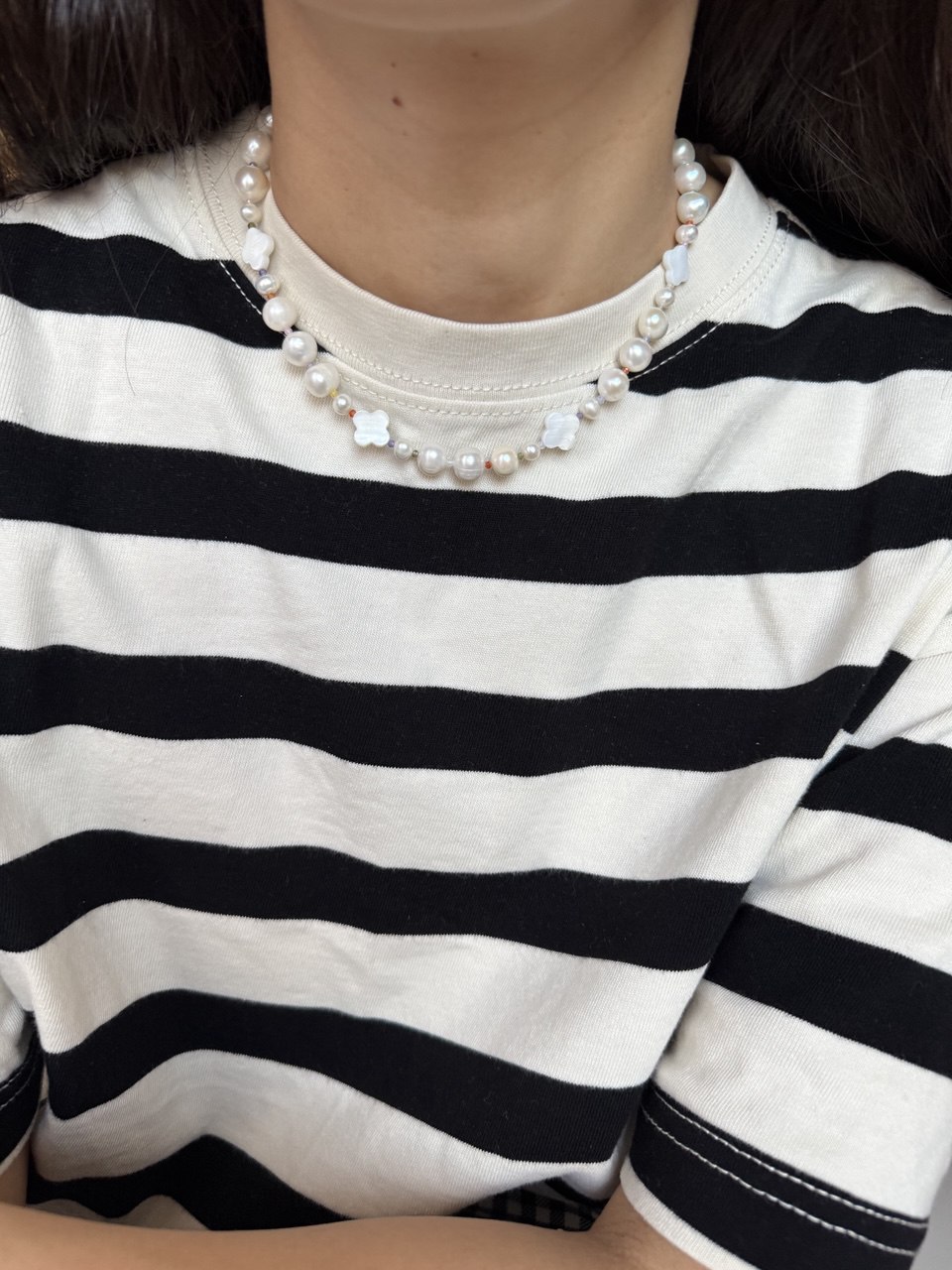 Length: 41+5 cm Materials: freshwater pearls, mother-of-pearls, stainless steel