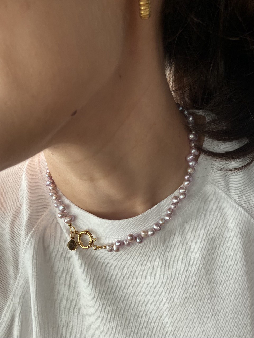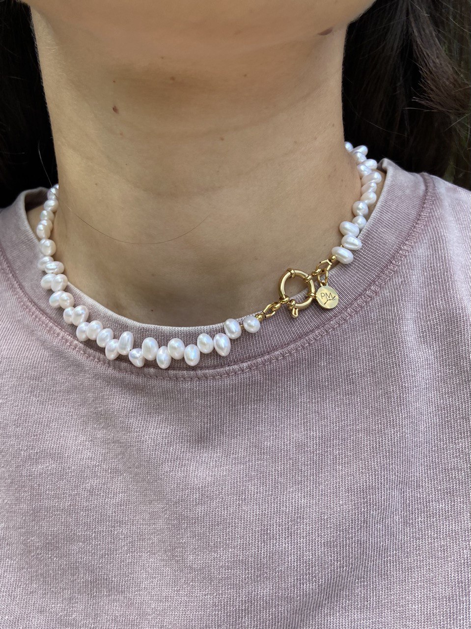 Length: 41 cm Materials: natural pearls, plated brass